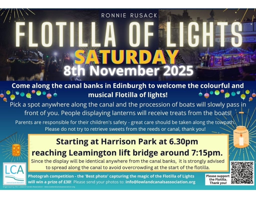 … we’ll be set up on the towpath, opposite the Ashley Terrace Boathouse, on Saturday 8th November 2025; and we’ll have a ‘Cake & Information Stall’, which will be ‘live’ from 4pm through to around 8pm that afternoon/evening. The Boathouse will also be ‘lit-up’ throughout the evening!